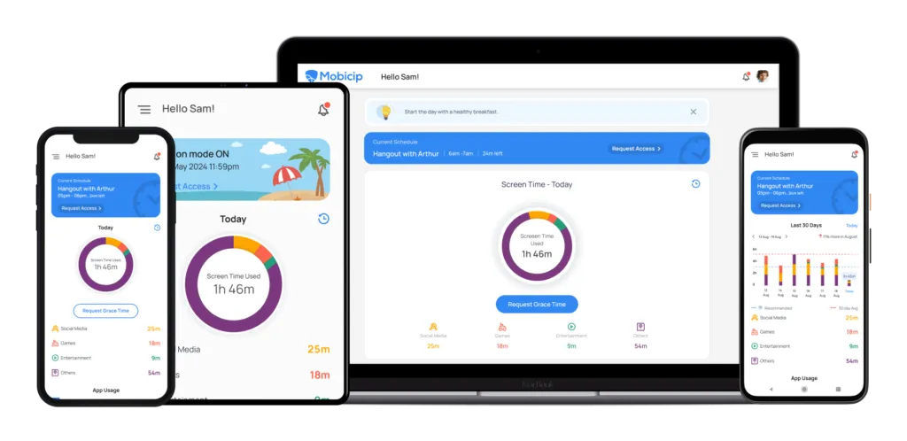 - Younger Kids: Family Link sets daily screen limits and enforces device bedtime, while Mobicip filters inappropriate websites and videos.