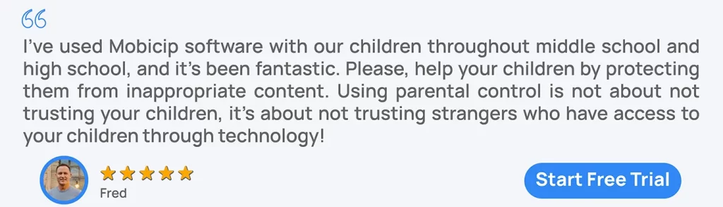 Protecting your child online is not just a choice; it’s a responsibility. With Mobicip, you can take proactive steps to ensure their safety and well-being in the digital world. Don’t wait until it’s too late – take action today to safeguard your child’s online experience. Start a 7 day free trial to know how Mobicip can help protect your family online. Together, let’s create a safer digital future for our children.